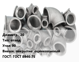 Отвод чугунный 20 отвод Угол:90 оцинкованный ГОСТ 8946-75, внутренняя резьба,резьбовой, шт цена от 63.24 Р / шт, где купить, условия доставки в Гомеле и Гомельской области