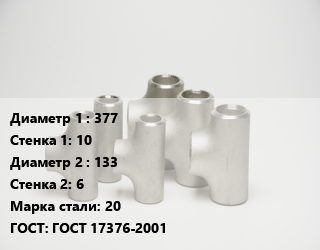 Тройник стальной 377х10 -133х6 Сталь: 20 ГОСТ: ГОСТ 17376-2001