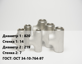 Тройник стальной 820х14 -219х7 ГОСТ: ОСТ 34-10-764-97