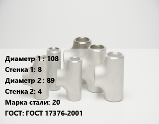 Тройник стальной 108х8 -89х4 Сталь: 20 ГОСТ: ГОСТ 17376-2001