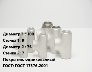 Тройник стальной 108х9 -76х7 оцинкованный ГОСТ: ГОСТ 17376-2001